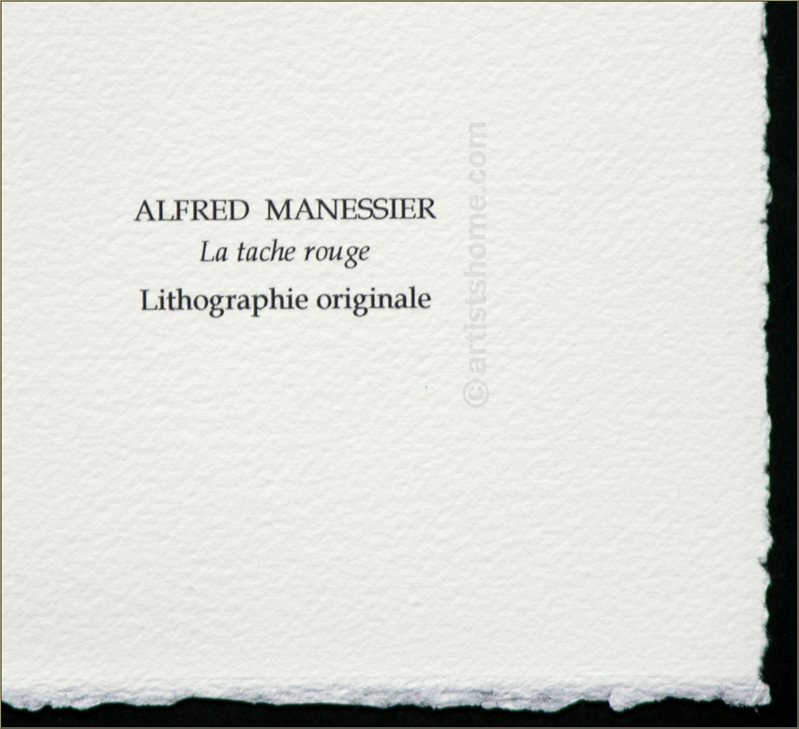Text on the reverse: "Alfred Manessier - La tache rouge - Lithographie originale"