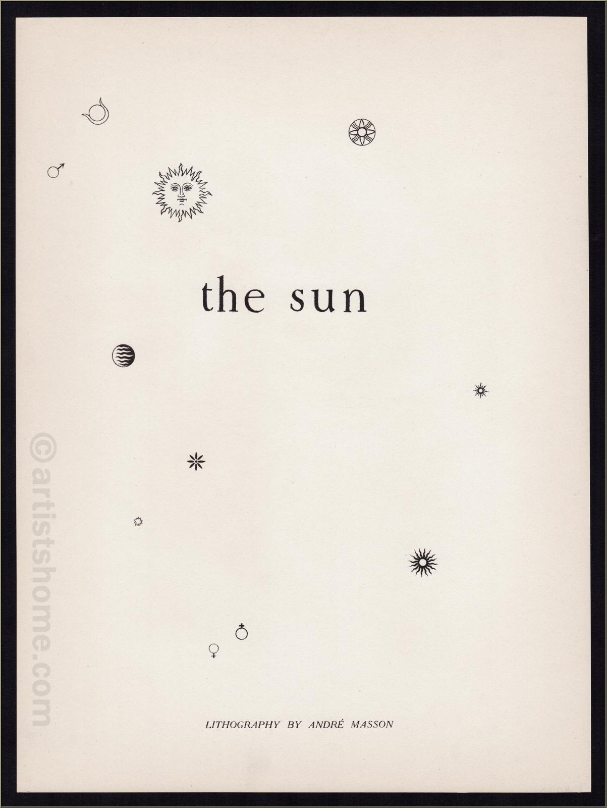 André Masson: 'The Sun' 1938, Original Lithograph for Verve avant-garde Art, on the theme of celestial bodies