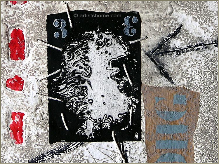 Large mixed media etching with carborundum and collage with cords on heavy handmade paper