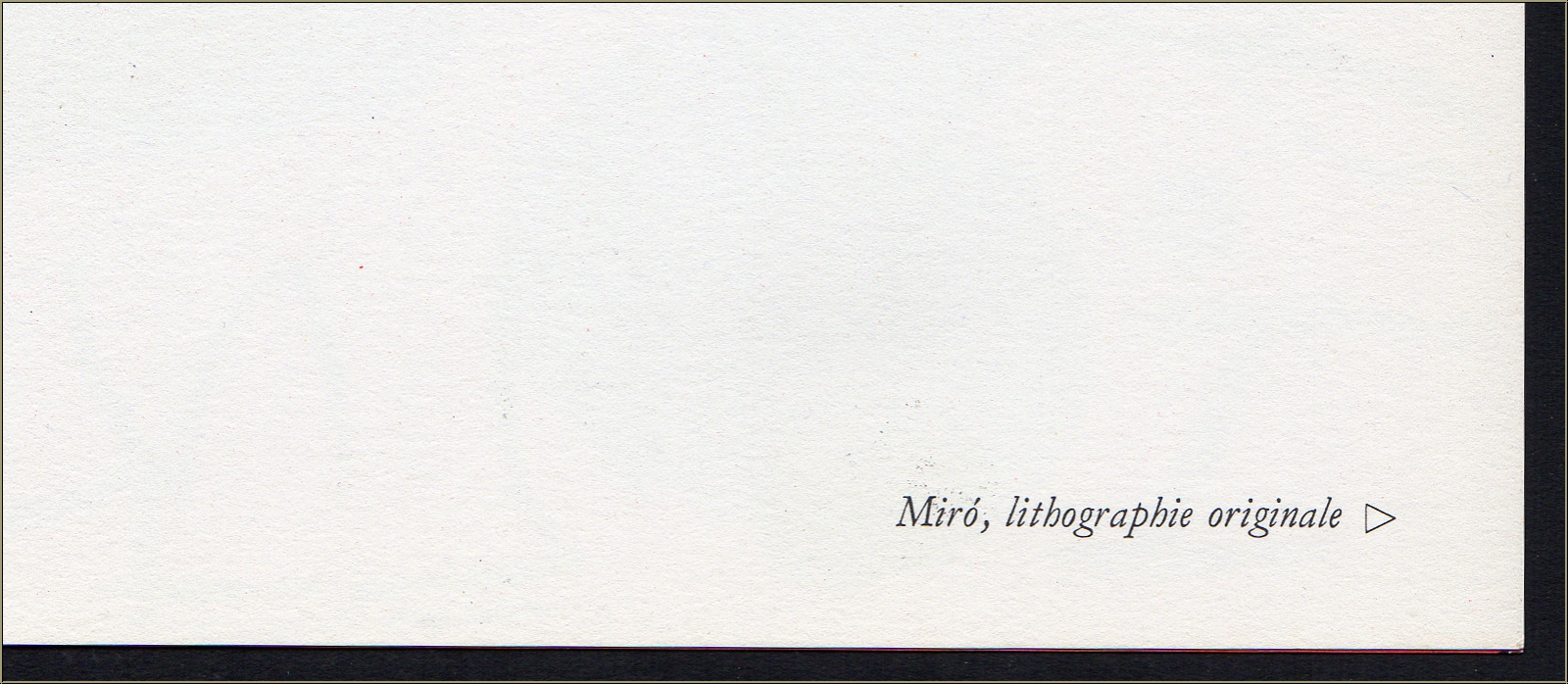 Text on the reverse (int.al.: "Miró, lithographie originale"), with the typical central fold and a few tiny holes from thread binding, as published.