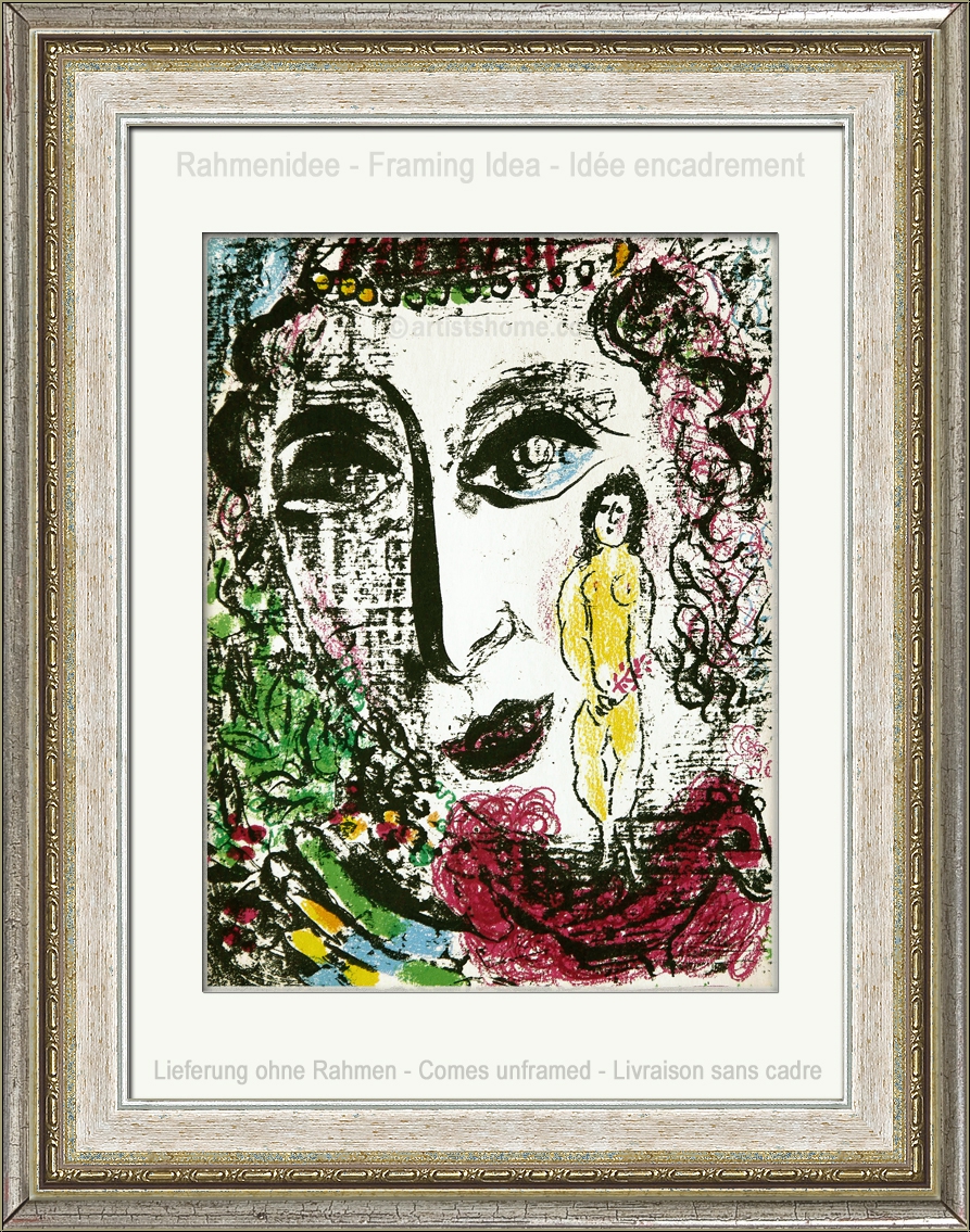 Remarks: Between 1960 and 1974 Marc Chagall created 28 full-page lithographs for the six authoritative volumes about his entire lithographic work. These original lithographs are not to be confused with photomechanically reproduced prints with the same motif.
