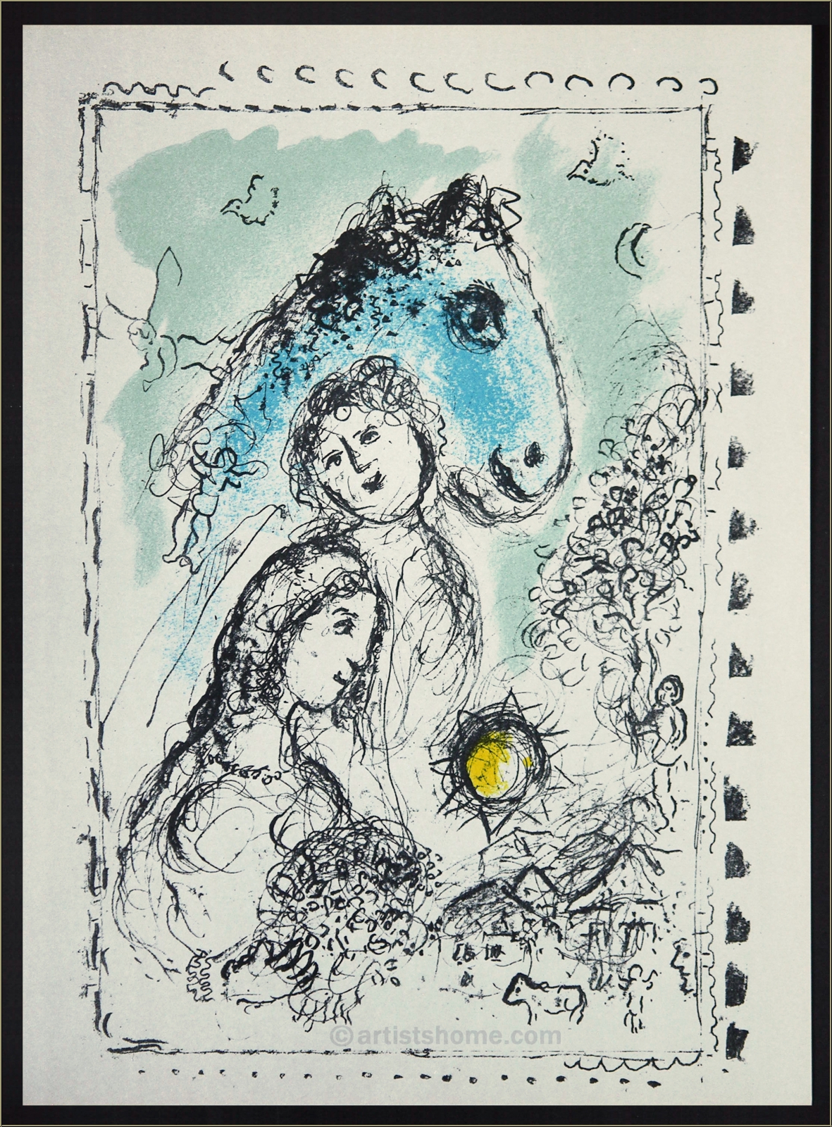 Marc Chagall: "Blue Horse With Couple" 1982, Original Lithograph