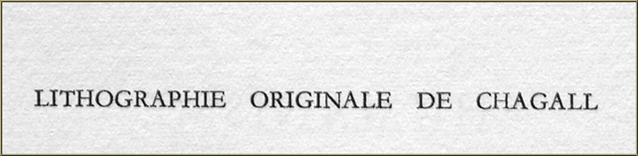 Edition | Paper: From a small limited edition, one of the unsigned impressions on Glastonbury Antique laid paper. In addition, a few pencil-signed impressions with wider margins were published, reserved for Chagall.