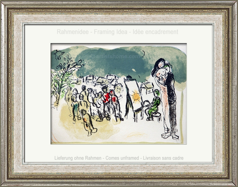 Marc Chagall: Original Lithograph 'Homage to Julien Cain' Lovers and Painter, 1968 - Prints | Graphic work
