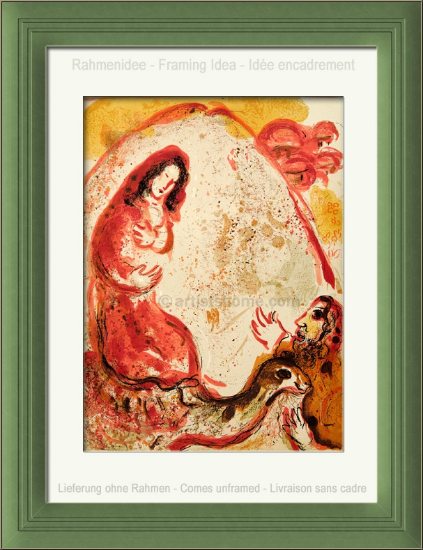 This is N O T a mass-produced reprint (photomechanical reproduction such as offset lithographs or giclée prints) but the original lithograph from Chagall's Bible II, exactly as referenced in Mourlots catalogue raisonné.