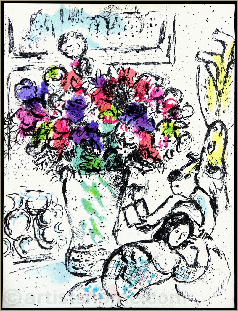 | | "The Anemones", 1974 Original lithograph in colours by Marc Chagall, served as frontispiece for Vol. IV about his lithographic oeuvre. This is N O T a mass-produced reprint (offset or photo lithograph from a later "Limited edition") but the original lithograph from the a.m. volume, exactly as referenced in Mourlot's catalogue raisonné. | Sizes: | 32 x 24 cm (sheet size = image size) | | Edition/Paper: | Offered here is one of the unsigned impressions from the book edition on strong velin paper. In addition, 50 signed and numbered copies on Japan paper with full margins (54 x 40,5 cm) were pulled. | | Published by: | Éditions André Sauret, Monte-Carlo | | Remarks: | Between 1960 and 1974 Chagall created 28 original full-page lithographs for the six authoritative volumes about his entire lithographic work. Since then, vast numbers of reproductions were put in circulation which are anything but original lithographs! | Documentation/ References: | Sorlier, Charles. Chagall Lithographe [V] 1974-1979. André Sauret, Monte-Carlo 1984, No. 730 Your print is being delivered with an abstract from the a.m. catalogue raisonné. In addition, you'll receive a proof of identity (without selling price) in case this print is intended as a present. | | Condition: | Read more A fine, untouched impression! Frame not included in delivery. | | | Customer Reviews: This item has not been rated, yet. Customer ratings may only be submitted by customers who have bought this item and are logged in. Your name will, of course, be displayed anonymized (e.g., "Tom H., United Kingdom").  *Applies to deliveries to Germany paid via PayPal. In case of payment by bank transfer, delivery will take 1-3 days longer from the day of your banker�s order. Delivery times for other countries and information for estimating the day of delivery can be found here |