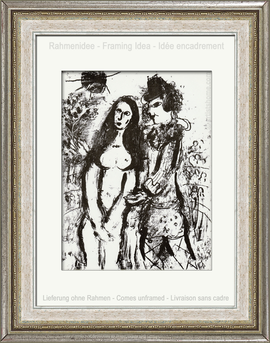 | | "The clown in love" (Mourlot 394) | Technique: | Original lithograph "Le Clown amoureux" (Mourlot No 394) This is N O T a mass-produced photomechanical reprint but the original lithograph from the year 1963, exactly as referenced in Mourlots catalogue raisonné. | | Year: | 1963 | | Edition/Paper: | Offered here is one of the unsigned impressions for the limited book edition on smooth velin paper. In addition, 150 impressions on Arches wove paper with full margins were pulled and signed by the artist | | signed: | unsigned, as issued. | | Published by: | Éditions André Sauret, Monte-Carlo | | Printed by: | Mourlot, Paris | | Remarks: | Between 1960 and 1974 Marc Chagall created 28 full-page lithographs for the six authoritative volumes about his entire lithographic work. These original lithographs are not to be confused with photomechanically reproduced prints with the same motif. | Documentation/ References: | Mourlot, Fernand. Chagall Lithograph [III] 1962-1968, André Sauret, Monte Carlo, 1969, No. 394 Your print is being delivered with an abstract from the a.m. catalogue raisonné. In addition, you'll receive a proof of identity (without selling price in case this print is intended as a present). | | Condition: | Read more A well-preserved impression from the archives. Frame not included in delivery. | | | Customer Reviews: This item has not been rated, yet. Customer ratings may only be submitted by customers who have bought this item and are logged in. Your name will, of course, be displayed anonymized (e.g., "Tom H., United Kingdom").  *Applies to deliveries to Germany paid via PayPal. In case of payment by bank transfer, delivery will take 1-3 days longer from the day of your banker�s order. Delivery times for other countries and information for estimating the day of delivery can be found here |