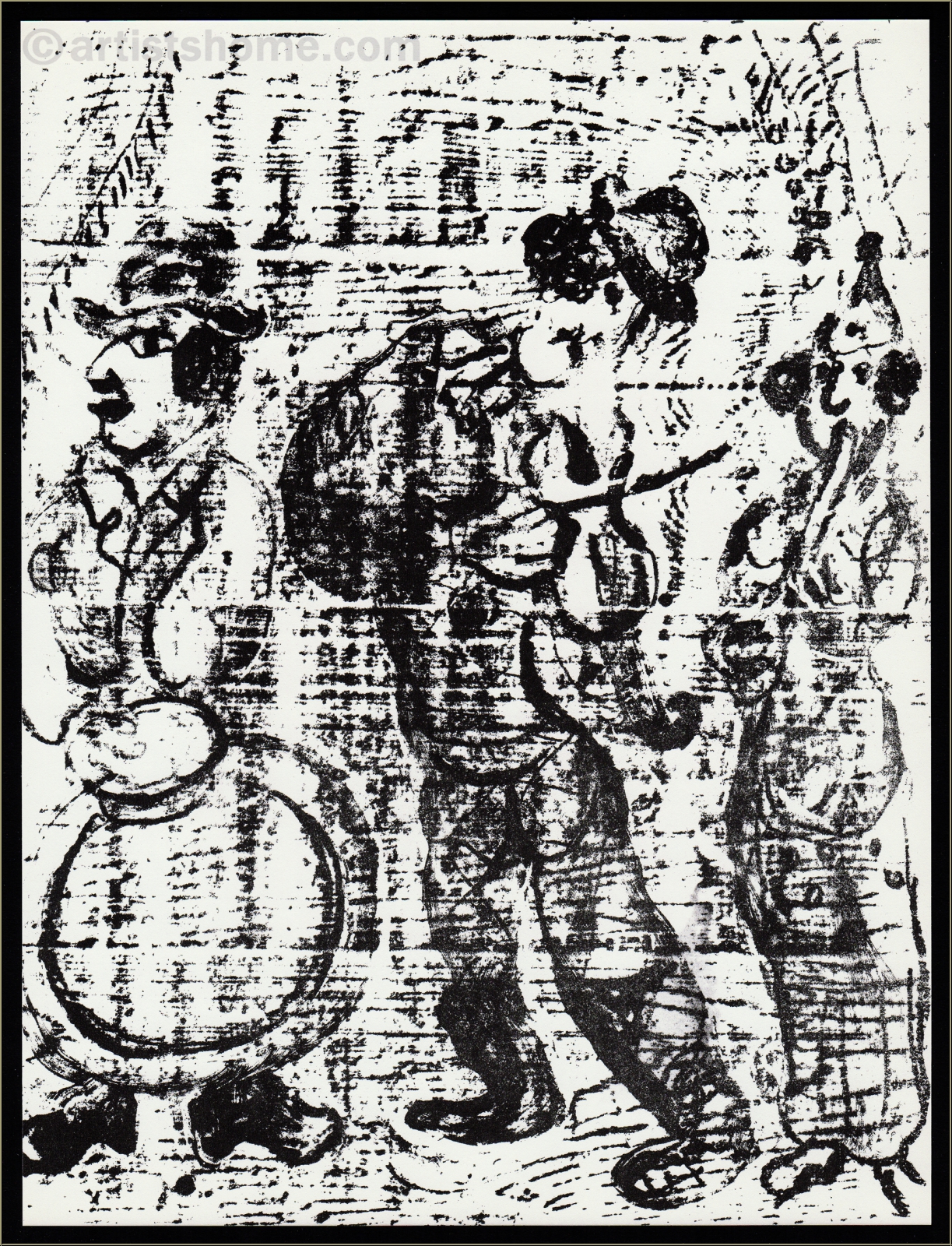 | | Original lithograph "Les Musiciens Vagabonds" - Circus Artists playing their instruments (Fiddle, Tambourine and Clarinet) Item No.: CHA-63-05 Delivery: Price: $ 171.72 Prepayment price: $ 163.13 subject to the margin scheme (§25a UStG) Buy with complete confidence: For details please click  In-Stock-Guarantee: we do not list sold-out or currently unavailable items  5% discount for advance payment by bank transfer  We do not sell reprints made at a later date but original prints  We ship insured and at fair prices within 24h, trackable online |