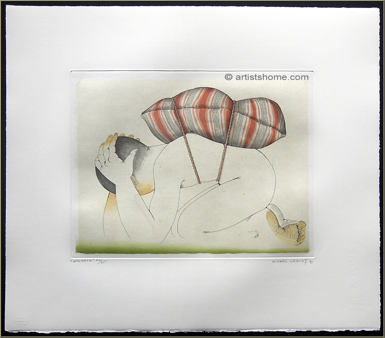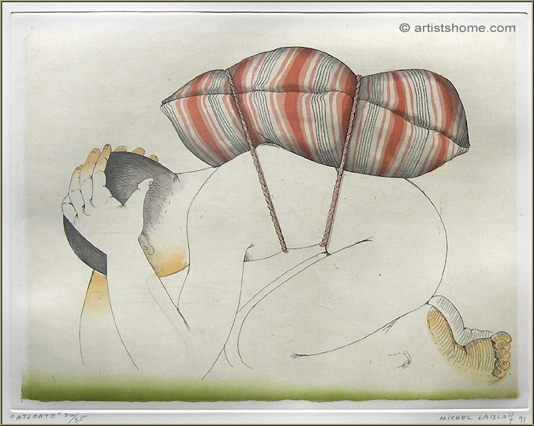 Michel Lablais: Etching 'Atlante 1991, Love Affair with Asia China, Japan Meditation cushion, signed - Prints