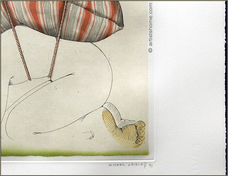 Michel Lablais: Etching "Atlante" Love Affair with Asia, China, signed