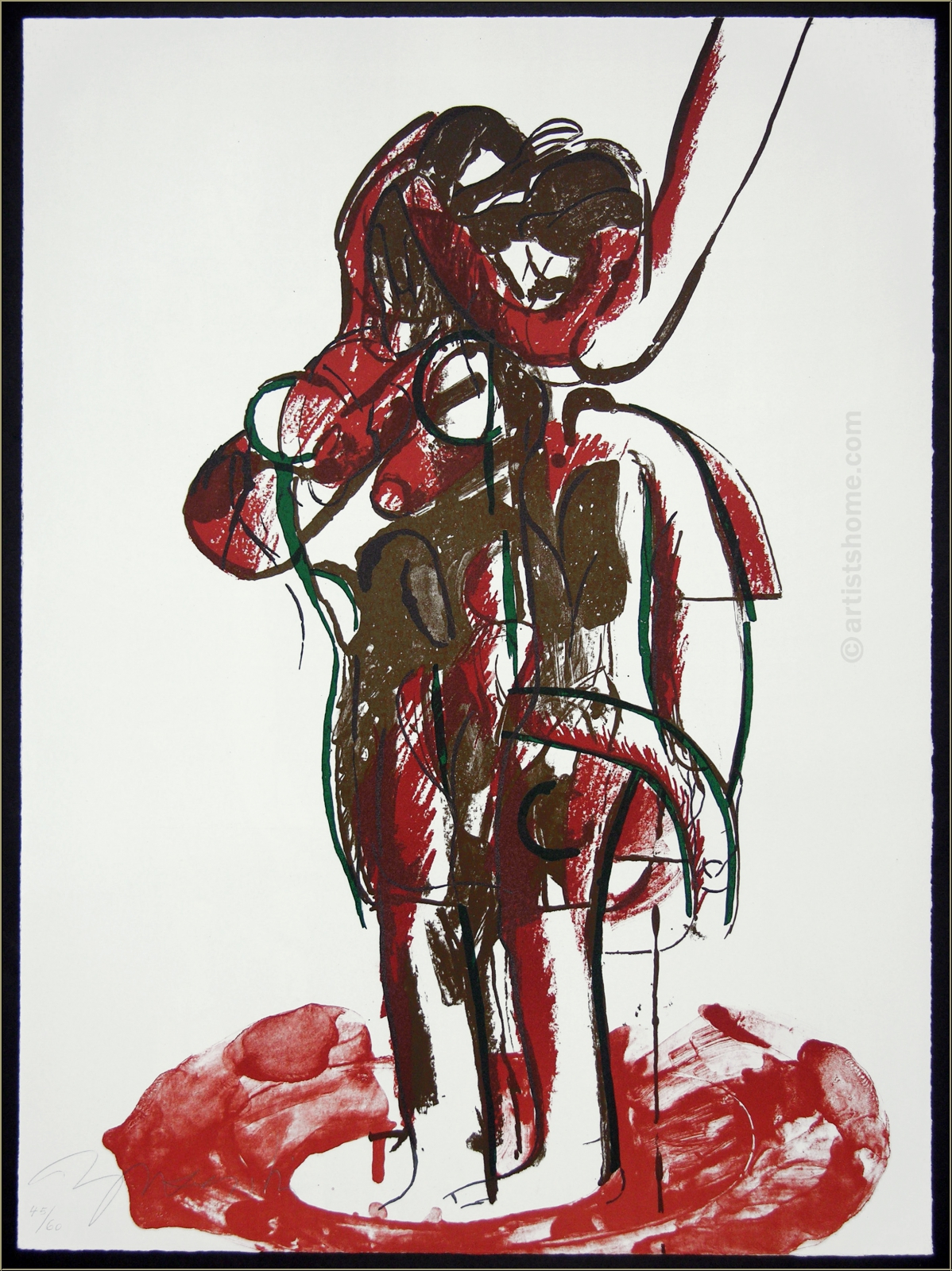 Abstract figure, original lithograph by the German sculptor and printmaker, signed in pencil