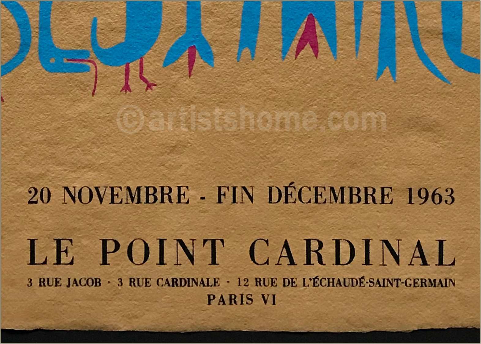 Details:"Victor Brauner - Bestiaire", 1963 Original vintage poster for the artist's exhibition at the "Le Point Cardinal" Gallery in Paris.