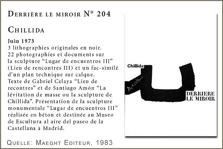 The issue no. 204 accompanied the exhibition of a monumental sculpture which was built with concrete by Chillida in 1973 for the Museo de Escultura in Madrid. This issue contains 3 original lithographs by Chillida.