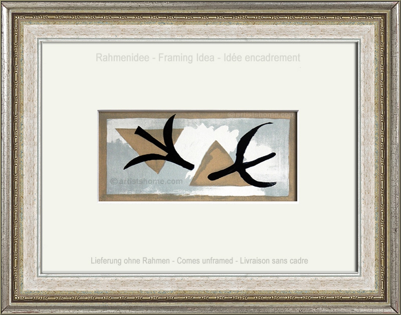 Size / Paper: 38 x 28 cm / 15" x 11" (sheet) - 10 x 21 cm / 4" x 8.3" (image), printed on velin paper with text on the reverse, as published in 1959 in DLM "Braque"