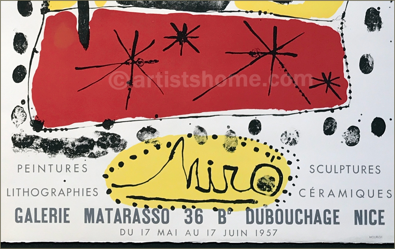 One of the very first original posters created by Miro for an exhibition in Nice, printed on watermarked Arches paper by Mourlot.