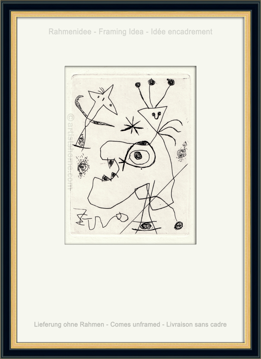 Early original etching by Miró from the crossed copperplate
