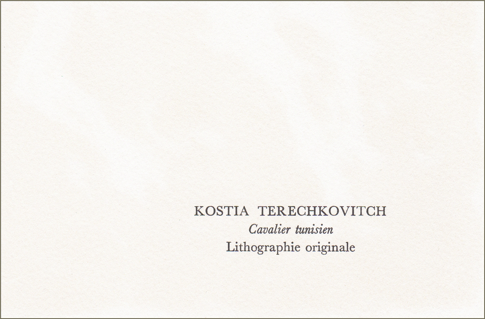 Remarks: Text on the reverse: "Kostia Terechkovitch - Cavalier tunisien - Lithographie originale"