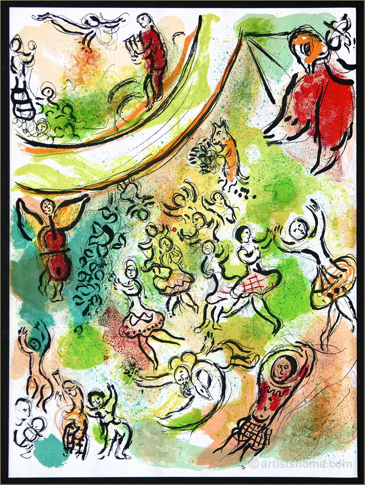 Original lithograph in colours by Marc Chagall for "Le Plafond de l'Opéra de Paris", the remarkable book which gave a detailed description of Chagall's plans to decorate the ceiling of the Paris Opera House.