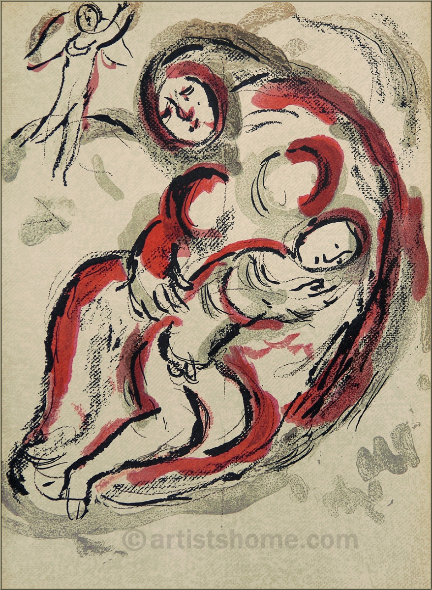 | | "Hagar In The Desert" (Mourlot 241) Original colour lithograph by Marc Chagall for his renowned book "Illustrations for The Bible". This is N O T a mass-produced reprint (photo or grano lithograph from a so-called "Limited edition") but the original lithograph from Chagalls Bible II, exactly as referenced in Mourlot's catalogue raisonné. | Original edition: | One of 6500 unsigned impressions from the book edition on strong velin paper. In addition, 50 pencil-signed and numbered impressions on Arches wove paper were published. | | Size: | 35,5 x 26 cm | 14" x 10.2" (sheet size = image size) | | Published by: | Éditions de la Revue Verve, Teriade, Paris, 1960 | | Printed by: | Mourlot, Paris | | Remarks: | On the reverse: another original lithograph in black (Mourlot 264) Biblical reference: Gen 16 | Documentation/ References: | Mourlot, F., Chagall Lithograph [II] 1957-1962, A. Sauret, Monte Carlo 1963, No. 241 + 264 Your print is being delivered with an abstract from the a.m. catalogue raisonné. In addition, you'll receive a proof of identity (without selling price) in case this print is intended as a present. | | Condition: | Read more In very good condition, an excellent impression from the archives. Frame not included in delivery. | Note: Lithographs are not automatically original lithographs! Frequently, they are photo-mechanical reproductions of originals, so-called art prints. The danger of falling for one of the numerous reproductions or prints with forged signatures, increases according to the level of popularity of the artist. Read more | | | Customer Reviews: This item has not been rated, yet. Customer ratings may only be submitted by customers who have bought this item and are logged in. Your name will, of course, be displayed anonymized (e.g., "Tom H., United Kingdom").  *Applies to deliveries to Germany paid via PayPal. In case of payment by bank transfer, delivery will take 1-3 days longer from the day of your banker�s order. Delivery times for other countries and information for estimating the day of delivery can be found here |