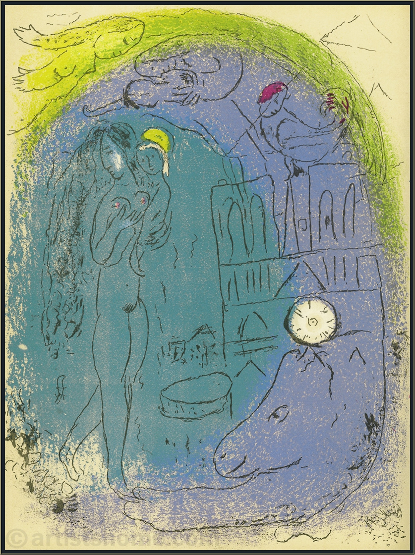 Marc Chagall: Lithograph "Mother and Child in front of Notre-Dame"