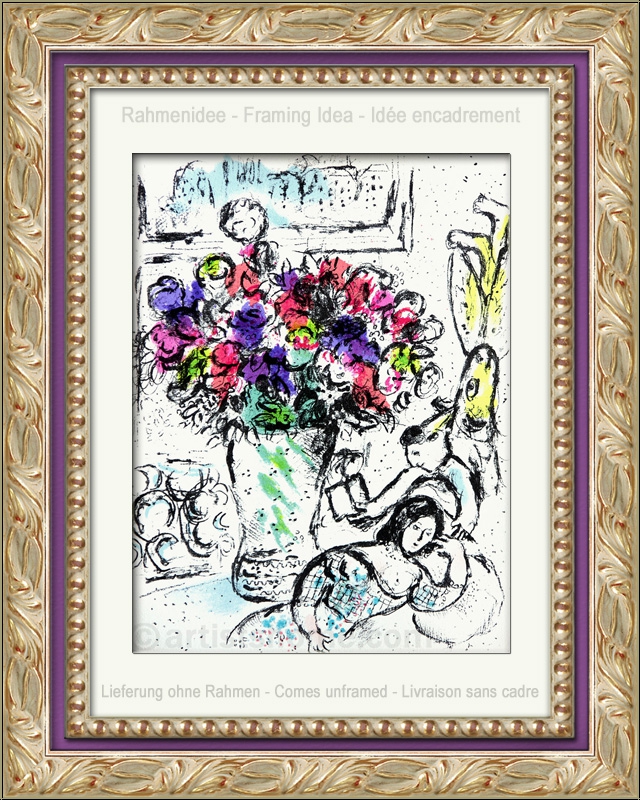 | | "The Anemones", 1974 Original lithograph in colours by Marc Chagall, served as frontispiece for Vol. IV about his lithographic oeuvre. This is N O T a mass-produced reprint (offset or photo lithograph from a later "Limited edition") but the original lithograph from the a.m. volume, exactly as referenced in Mourlot's catalogue raisonné. | Sizes: | 32 x 24 cm (sheet size = image size) | | Edition/Paper: | Offered here is one of the unsigned impressions from the book edition on strong velin paper. In addition, 50 signed and numbered copies on Japan paper with full margins (54 x 40,5 cm) were pulled. | | Published by: | Éditions André Sauret, Monte-Carlo | | Remarks: | Between 1960 and 1974 Chagall created 28 original full-page lithographs for the six authoritative volumes about his entire lithographic work. Since then, vast numbers of reproductions were put in circulation which are anything but original lithographs! | Documentation/ References: | Sorlier, Charles. Chagall Lithographe [V] 1974-1979. André Sauret, Monte-Carlo 1984, No. 730 Your print is being delivered with an abstract from the a.m. catalogue raisonné. In addition, you'll receive a proof of identity (without selling price) in case this print is intended as a present. | | Condition: | Read more A fine, untouched impression! Frame not included in delivery. | | | Customer Reviews: This item has not been rated, yet. Customer ratings may only be submitted by customers who have bought this item and are logged in. Your name will, of course, be displayed anonymized (e.g., "Tom H., United Kingdom").  *Applies to deliveries to Germany paid via PayPal. In case of payment by bank transfer, delivery will take 1-3 days longer from the day of your banker�s order. Delivery times for other countries and information for estimating the day of delivery can be found here |
