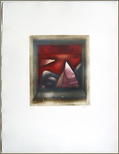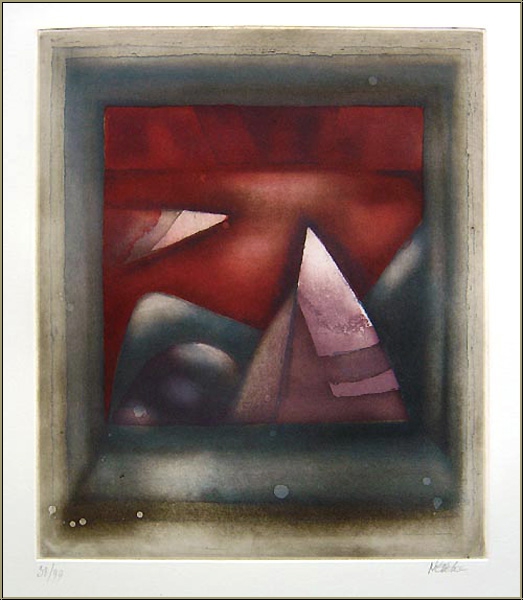 Original etching in terrific colors by French artist Michèle Nedelec. Printed on BFK Rives wove paper, signed and numbered.