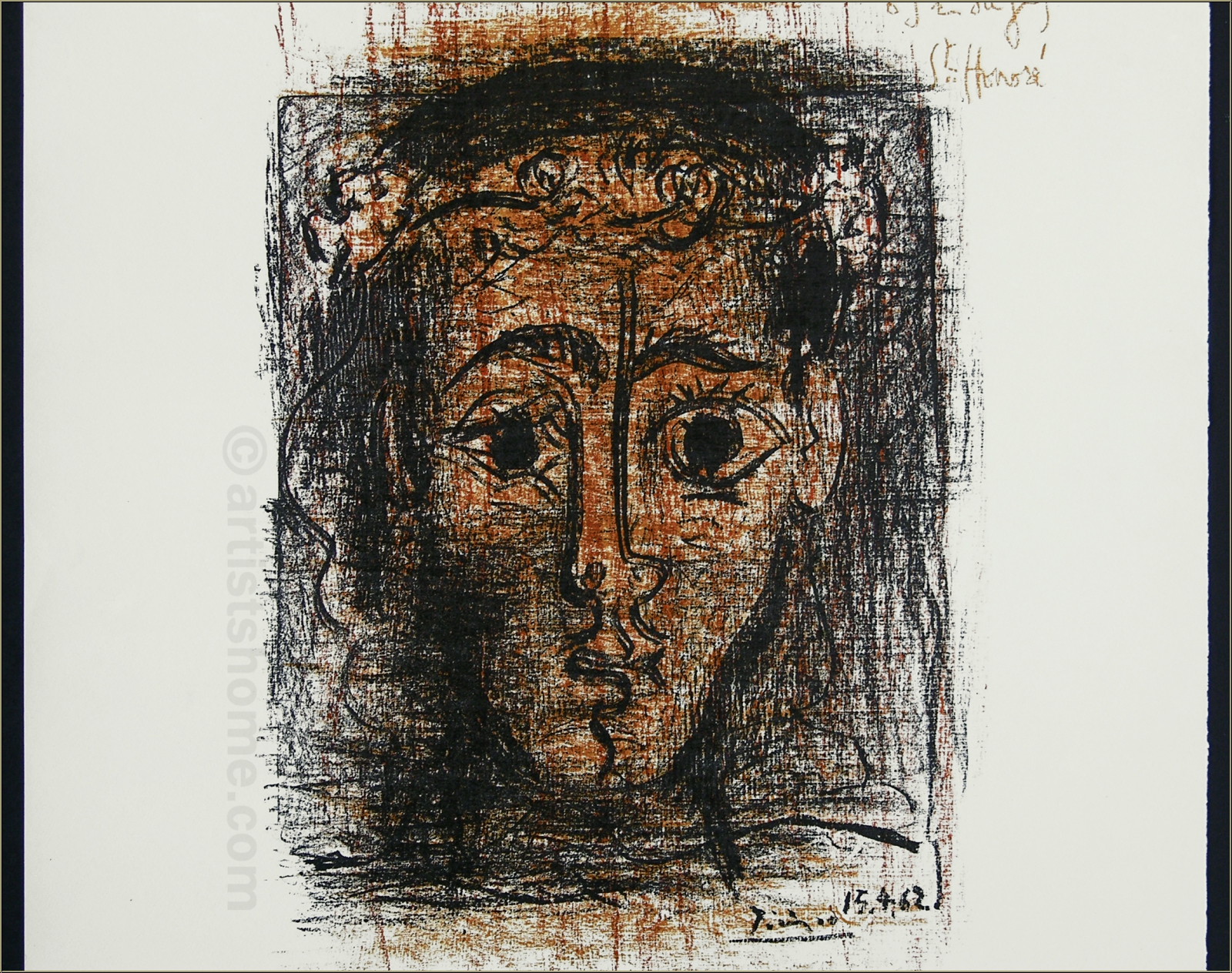 Tête de Jaqueline - Original exhibition poster on Arches, completely designed by Picasso and printed by Mourlot.