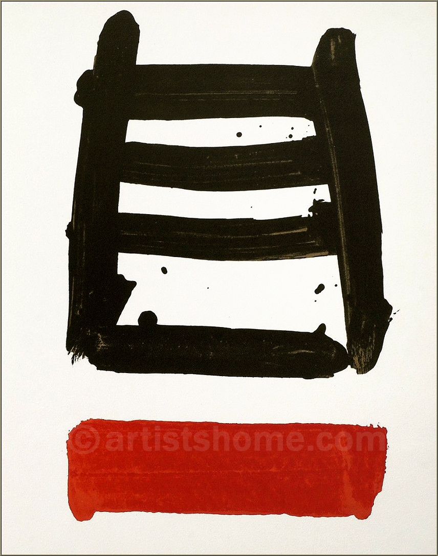 Description: This original lithograph was Soulages' contribution to the album "Jean Cassou. Vingt-deux poèmes". In addition, it has been used for the announcement of the legendary "Erker Meeting" in St. Gallen, in the original format.