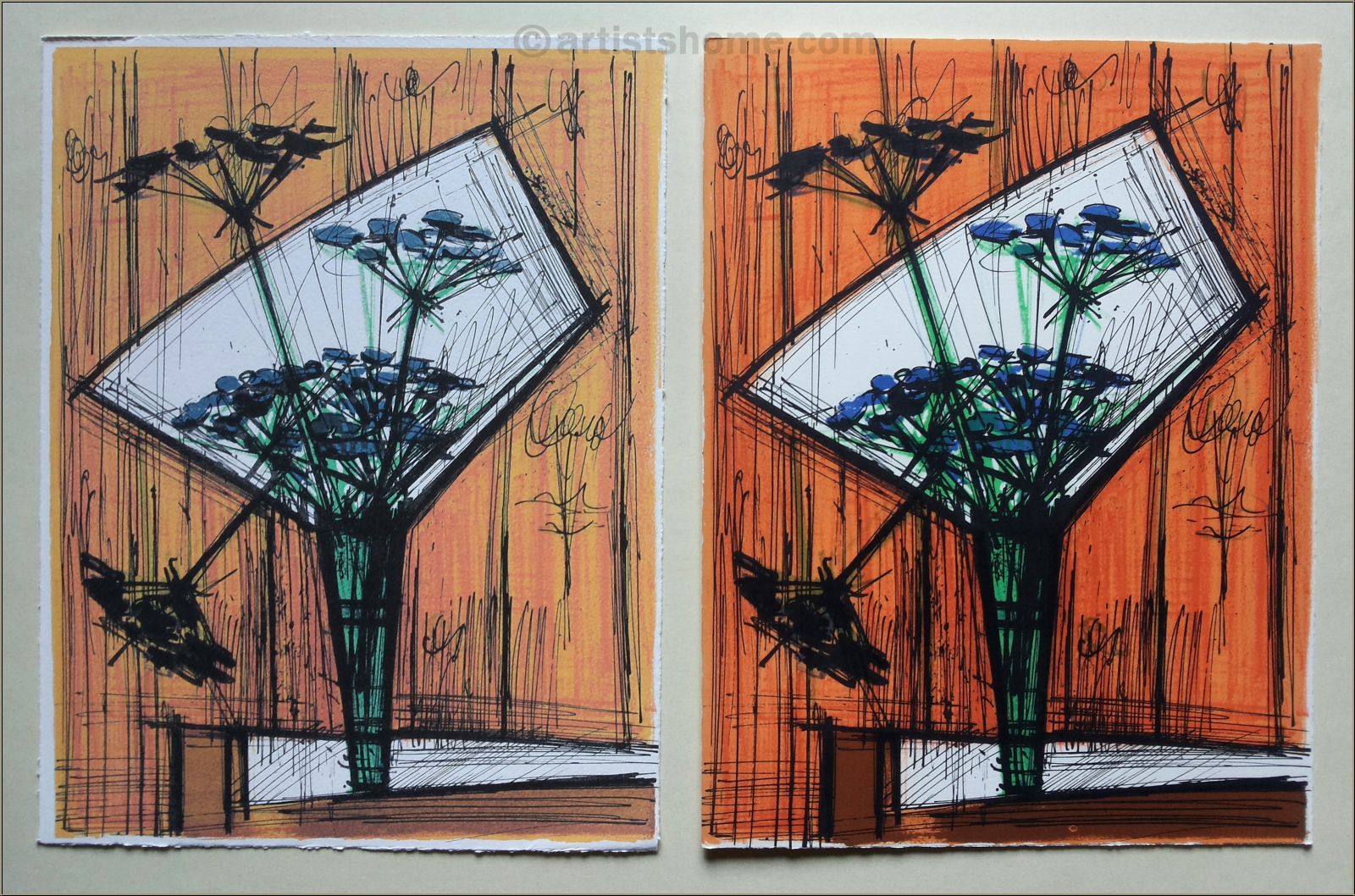 Bernard Buffet: Les ombelles 1972 Lithograph Mourlot Souvenirs et Portraits d'artistes original + pirated copy