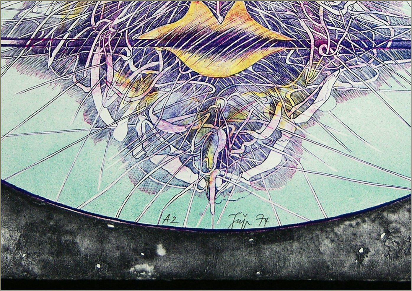 Details:"In the oval" - 1974 Typical work from Jaeger's "Human Zoo with all manor of creatures", who did not only cast off their clothes but also their skins - proudly presenting their insides to the viewer.
