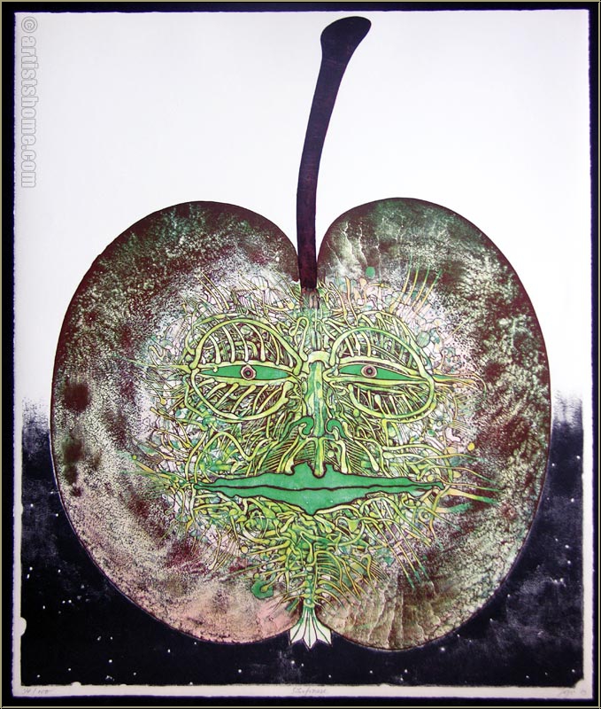 An old apple variety with a human face - large lithograph created by the German painter, printed on wove paper