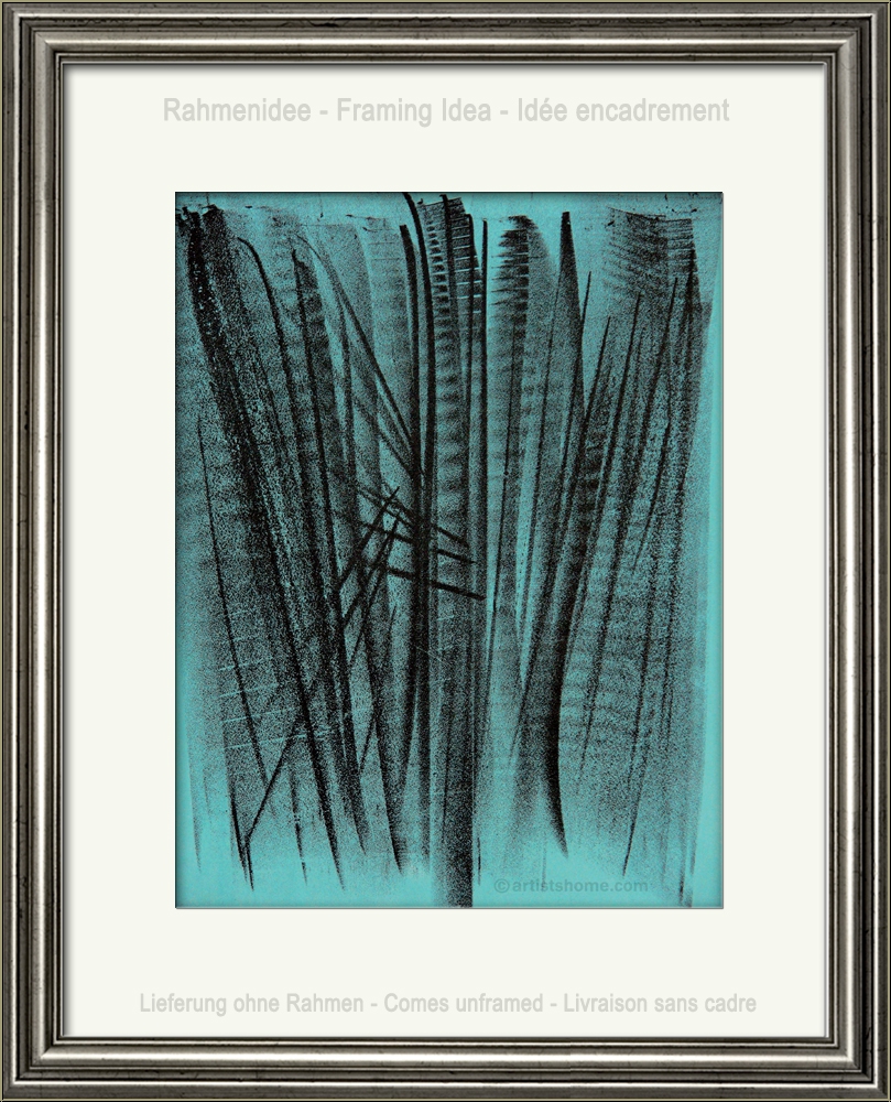 A typical work from the early sixties - abstract composition by Hans Hartung in black on turquoise ground.