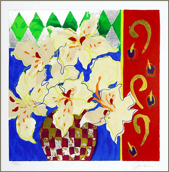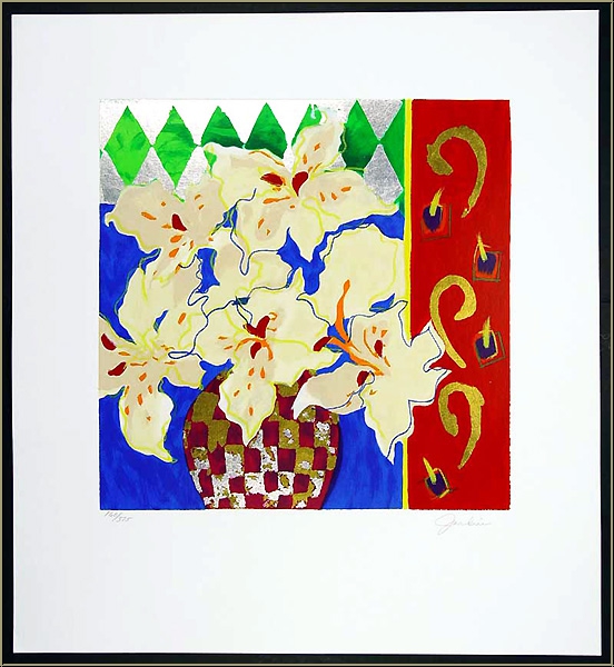 Liz Jardine: "Firecracker" creme-white Lilies, Serigraph, signed
