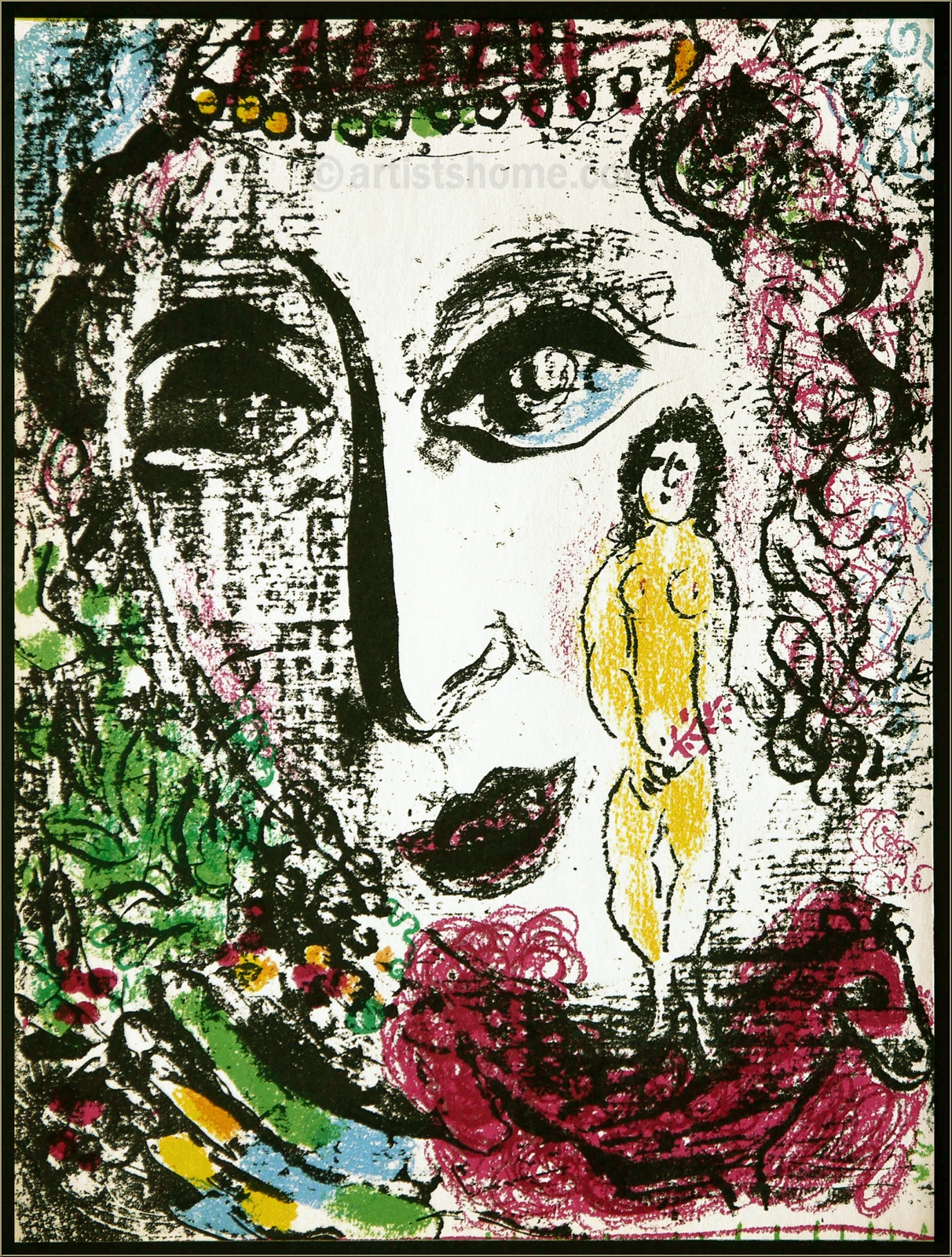 Remarks: Between 1960 and 1974 Marc Chagall created 28 full-page lithographs for the six authoritative volumes about his entire lithographic work. These original lithographs are not to be confused with photomechanically reproduced prints with the same motif.