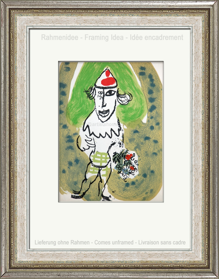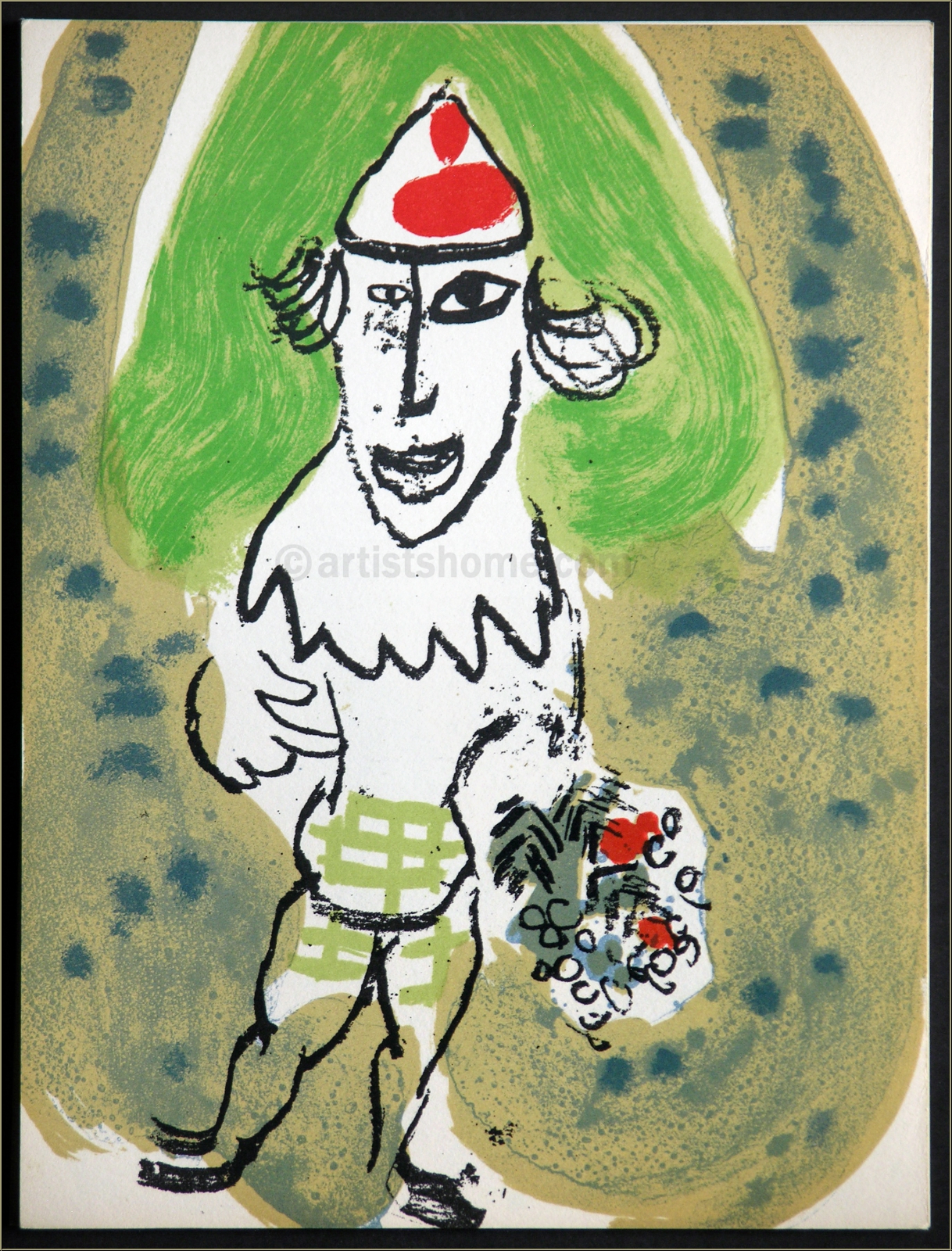 Marc Chagall: 'The Green Clown' with Flowers, 1966 Original Lithograph on wove paper - Limited Edition Prints