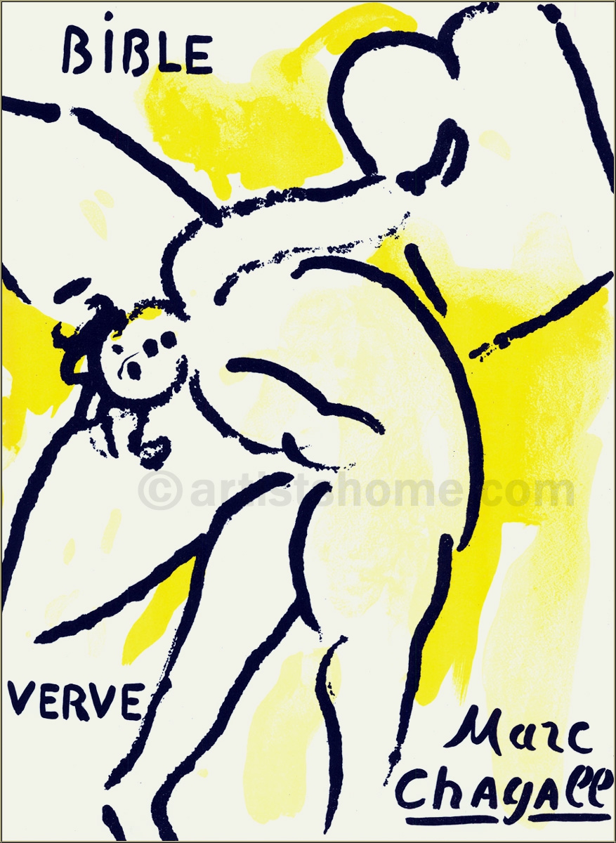 In 1956, the art critic and publisher Tériade brought out a special issue of the legendary art magazine Revue Verve, which was exclusively devoted to one of Marc Chagalls major themes: The Bible. For this outstanding issue, Chagall composed 18 full-page lithographs in colours and 12 in black and white. For his "Bible I" (4 years later, in 1960, the follow-up issue "Illustrations for The Bible" was published) Marc Chagall focused on characters from the Old Testament such as the Founding Fathers, the Kings, the Prophets and Angels.