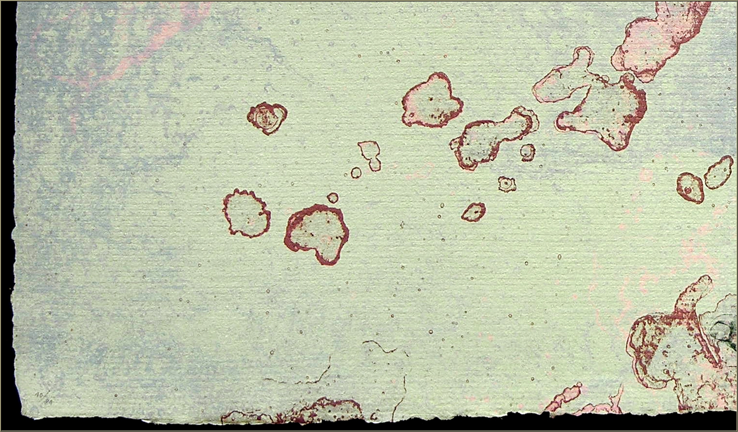 Reiner Schwarz: Unique lithograph printed on pastel green handmade paper, numbered in pencil by the artist
